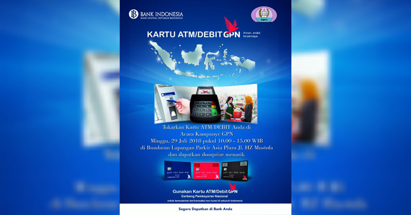 Selain, katanya, nasabah juga akan lebih dimudahkan dengan adanya standarisasi instrumen dan kanal pembayaran seperti ATM serta mesin EDC sehingga dapat memproses semua kartu dari bank manapun. “Untuk lebih paham apa itu GPN, anda bisa ikuti acara kampanye GPN pada hari Minggu 29 Juli 2018 pukul 10.00 sampai 15.00 WIB di Bundaran Lapangan Parkir Asia Plaza Jl. HZ Mustofa,” papar Heru.