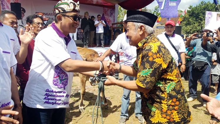 Tak hanya itu, bupati juga menyerahkan satu ekor sapi kepada pemenang jalan santai atas nama Ucu Sanusi dari Koperasi Bantar Kalong dan satu ekor kambing atas nama Abun warga Bolodog Leuwisari. (anto)