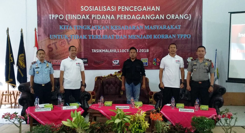 TASIKMALAYA (CM) – Masih banyaknya Warga Negara Indonesia (WNI) yang bekerja ilegal di luar negeri, dan terlibat Tindak Pidana Perdagangan Orang (TPPO) membuat Kementerian Hukum dan Hak Asasi Manusia melalui Direktorat Pengawasan dan Penindakan Keimigrasian menggelar kegiatan sosialisasi Tindak Pidana Perdagangan Orang di Gedung Olahraga Desa Tanjung Jaya Kecamatan Sukaresik Kabupaten Tasikmalaya, Kamis (11/10/2018).