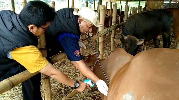 “Hasil pemeriksaan menggunakan alat Antemortem beberapa sempel di sejumlah lapak penjualan hewan kurban Sapi, untuk sementara aman tidak ditemukan adanya gejala hewan yang sakit atau terkena penyakit secara fisik aman,” jelas Zulyaden di Jl.Let.Jen Ibrahim Aji Km 7, Kelurahan Sukamaju Kaler Kecamatan Indihiang Kota Tasikmalaya.