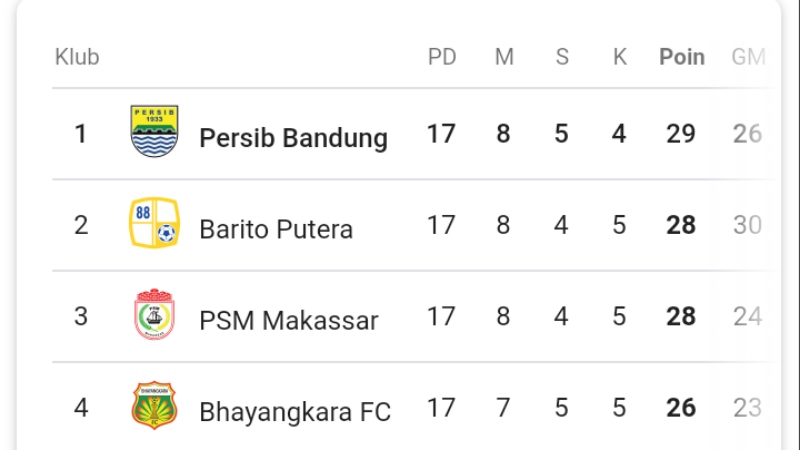Berkat kemenangan itu, PERSIB menggusur Barito Putera dari puncak klasemen dengan mengumpulkan nilai 29 dari 17 laga yang sudah dimainkan di sepanjang paruh musim pertama, PERSIB unggul satu poin dari Barito Putera dan PSM Makassar.