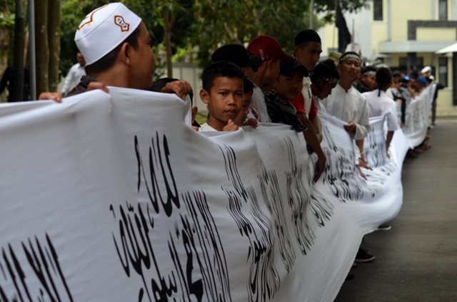 Tak hanya mengelar konvoi dan menuntut pemerintahagar serius menangani permasalahan maksiat di Kota Tasikmalaya, umat islam juga membentangkan spanduk kalimat tauhid sepanjang 300 meter, mereka menegaskan bahwa bendera Arroya dan Alliwa adalah mutlak bendera umat islam bukan bendera milik ormas HTI, bendera ini akan tetap berkibar di bumi Tasikmalaya sepanjang kalimat tauhid menancap dalam diri umat islam.
