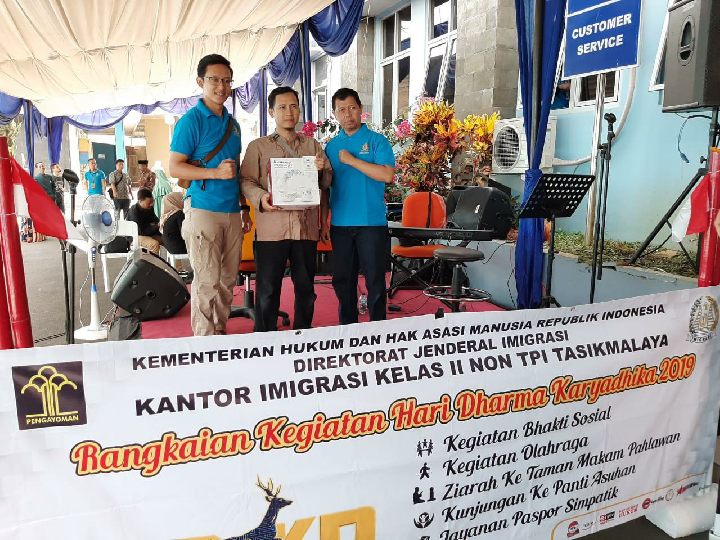 KOTA TASIKMALAYA (CM) – Meriahkan Hari Bhakti Dharma Karyadhika Tahun 2019, Kementerian Hukum dan Hak Asasi Manusia (Kemenkumham) melalui Kantor Imigrasi Kelas ll Non TPI Tasikmalaya, mengisi hari libur selama dua hari dengan menggelar kegiatan pelayanan pembuatan paspor Simpatik.