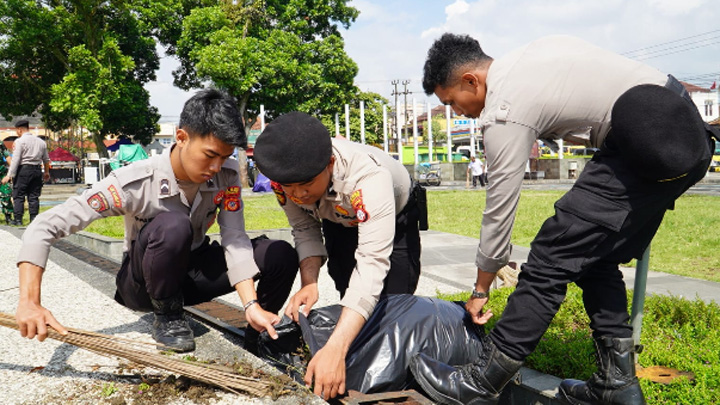 Kompol Glatiko menjelaskan, pembersihan difokuskan pada pengangkutan sampah plastik, limbah rumah tangga, serta material lain yang dapat mengganggu kebersihan dan kenyamanan pengunjung alun-alun. Dalam kegiatan tersebut, peserta juga melakukan pemilahan sampah organik dan non-organik.