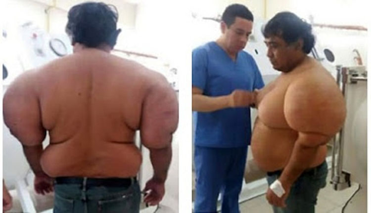 Usai menyelam, tubuh pria asal Peru bernama Alejandro Ramos Martinez ini bertambah seberat 38 kilogram. Bagian lengan dan dadanya tampak membengkak.