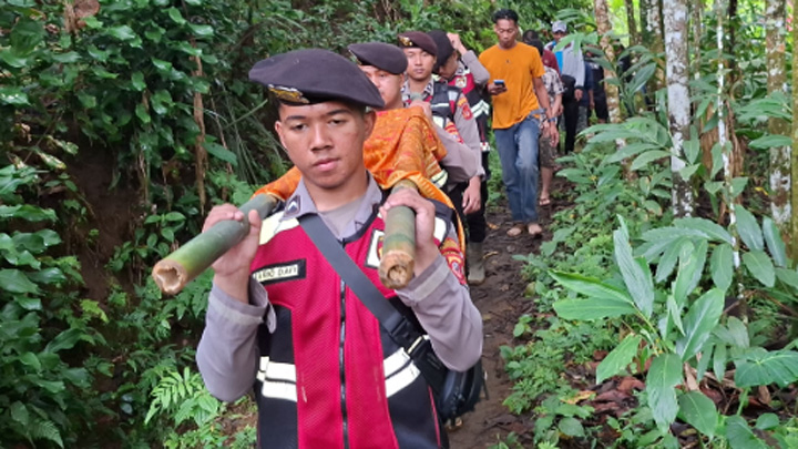 Jarak rumah ke pemakaman yang cukup jauh tak menyurutkan niat para personel kepolisian. Jenazah digotong secara bergantian hingga ke tempat peristirahatan terakhir.