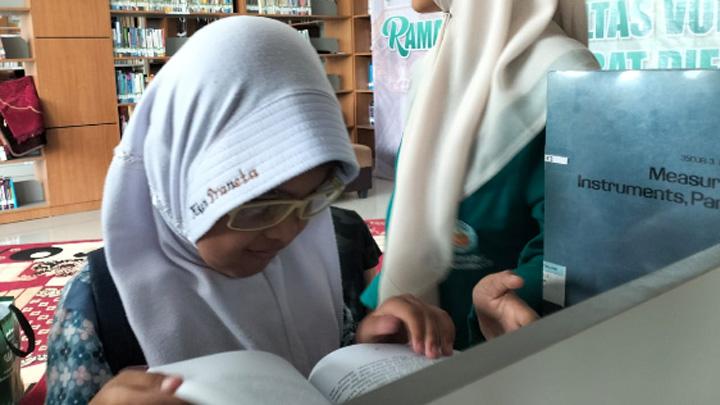 Setibanya di lokasi, para peserta diarahkan menuju ruang perpustakaan kampus dengan pendampingan mahasiswa. Para mahasiswa menggandeng dan membantu mereka berjalan hingga ke ruang kegiatan agar dapat mengikuti seluruh rangkaian acara dengan aman.