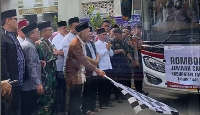 Mewakili Bupati Tasikmalaya H. Ade Sugianto, Kabag Kesra Setda Kabupaten Tasikmalaya, Drs. Asep Zamzam Nizar, hadir untuk melepas secara simbolis JCH kloter 45 Kabupaten Tasikmalaya. Dalam kesempatan tersebut, Drs. Asep Zamzam Nizar memberikan pesan dan harapan kepada para Jemaah agar dapat melaksanakan ibadah haji dengan khusyuk dan kembali dengan selamat.