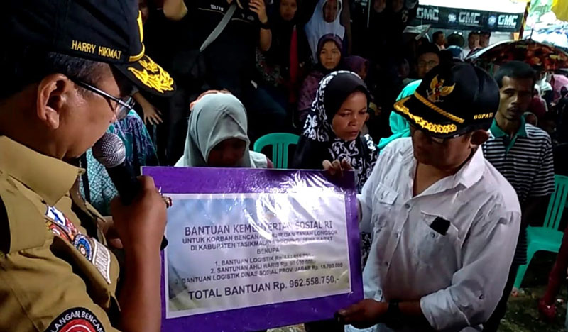 TASIKMALAYA (CM) – Pasca bencana alam banjir bandang yang melanda wilayah selatan Kabupaten Tasikmalaya di Kecamatan Cipatujah, Culamega, dan Karangnunggal, Kementerian Sosial Republik Indonesia menyalurkan bantuan sebesar Rp 962.558.750 kepada Pemkab Tasikmalaya.
