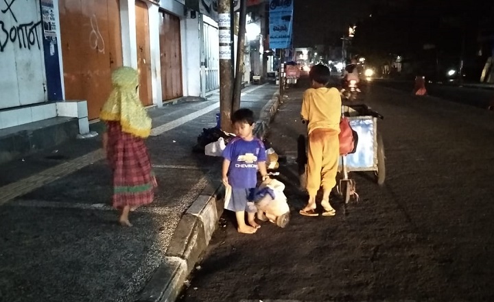 Dika, Dewi dan Cahyo masih memulung hingga malam hari