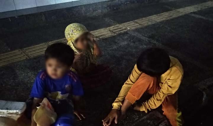 Usai memungut barang bekas yang ditemukan sisepanjang Jalan Mitrabatik, ketiga bocah itu beristirahat. Tepatnya di sekitar Gudang Pesantren, mereka duduk di trotoar.