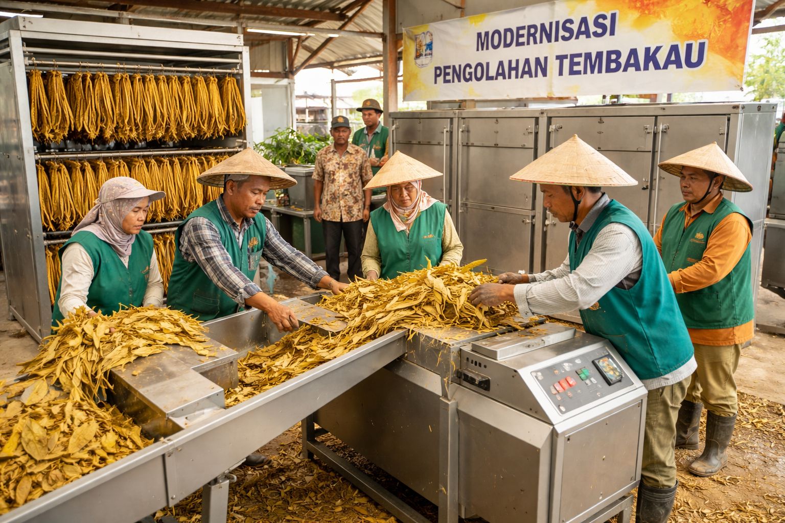 Salah satu langkah strategis yang tengah dijalankan adalah modernisasi pengolahan pascapanen tembakau, yang menjadi bagian dari program pemanfaatan Dana Bagi Hasil Cukai Hasil Tembakau (DBHCHT).