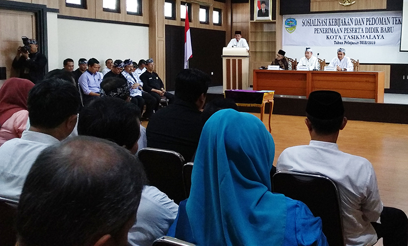 KOTA TASIKMALAYA (CM) – Pemerintah Kota Tasikmalaya melalui Dinas Pendidikan menggelar kegiatan sosialisasi kebijakan dan pedoman teknis rutin Penerimaan Peserta Didik Baru (PPDB) tahun ajaran 2018-2019 di Aula Bale Kota Tasikmalaya, Kamis (24/5/2018).