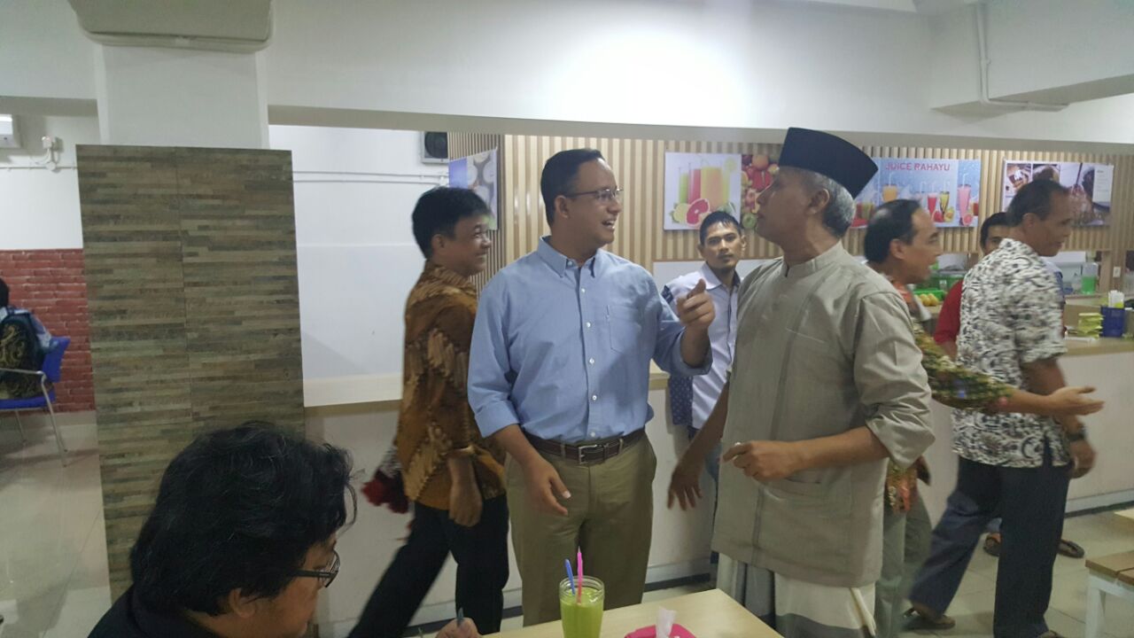 JAKARTA, (CAMEON) – Wajah Rustam langsung tersenyum ketika melihat Calon Gubernur DKI Jakarta Anies Baswedan masuk ke kantin Kemendikbud, Jakarta, Jumat siang (4/11). Rustam langsung menyalami dan mendoakan agar mantan Menteri Pendidikan dan Kebudayaan itu bisa sukses.