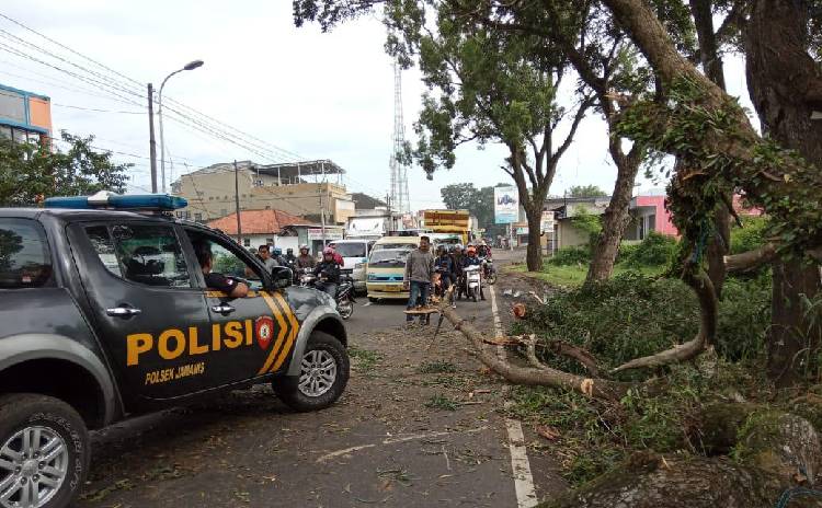Pihak BPBD melakukan evakuasi dengan mengergaji pohon itu bersama anggota Polsek Jamanis dan masyarakat.