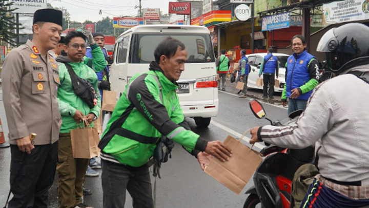 Polres Tasikmalaya Gandeng Ojol Bagikan 250 Paket Takjil Sambil Edukasi Tertib Lalu Lintas