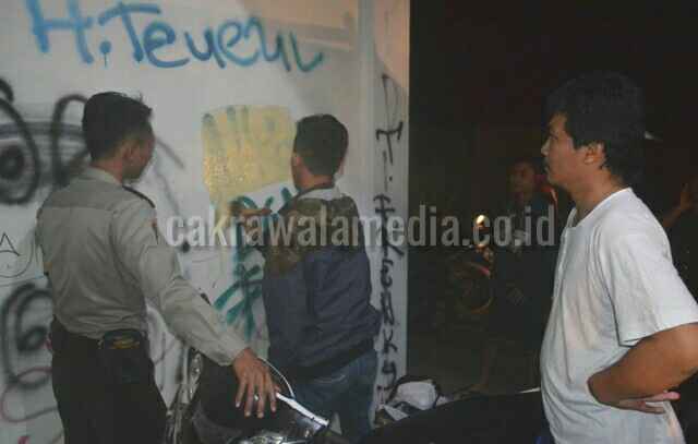 TASIKMALAYA ( CAMEON ) -Sejumlah warga di sekitar kampung Cipari Hilir RT 01 RW 06 kel Cipari Kec Mangkubumi Kota Tasikmalaya Ahad malam ( 03/09 ) berhasil mengumpulkan sedikitbya 20 orang pelaku vandalis yang kerap meresahkan warga, salah seorang rumah milik Oom Abdurrahman yang hampir sebagian rumahnya habis dicurat coret para pelaku.