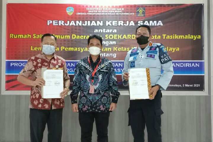 KOTA TASIKMALAYA (CM) – RSUD dr Soekarjo bersama Lembaga Pemasyarakatan (LP) Kelas llB Tasikmalaya jalin kerjasama melalui MOU kesepakatan dalam penerapan program pelayanan kesehatan dan pembinaan kemandirian warga binaan pemasyarakatan, Selasa (2/3/2021).