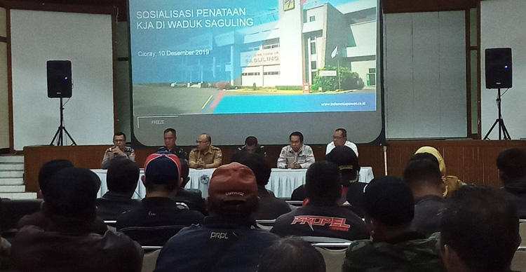 Sektor 9 Citarum harum bersama PT. IP Saguling melakukan sosialisasi penertiban kerampa jaring apung (KJA), di kantor PT. Indonesia Power Saguling POMU, Rajamandala, Kabupaten Bandung Barat, Selasa (10/12/2019).