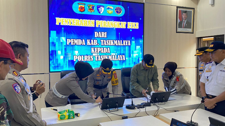 Penerapan ini diawali dengan penyerahan hibah perangkat ETLE dari Pemerintah Kabupaten Tasikmalaya kepada Polres Tasikmalaya.