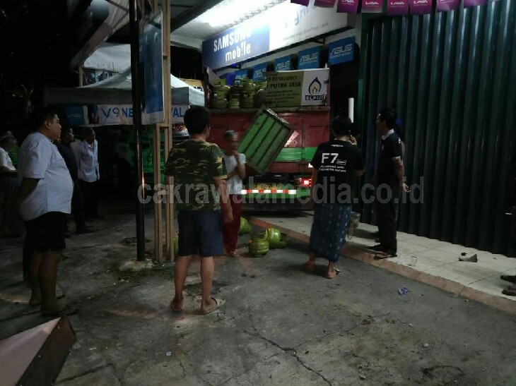PANGANDARAN (CM) – Truk bernomor polisi Z 9335 TB pengangkut gas elpiji ukuran 3 kg menabrak toko Handphone Aryapone di jalan raya Pangandaran – Parigi tepatnya di Dusun Kemplung, Desa Karangbenda, Kecamatan Parigi, Kabupaten Pangandaran.Jawa Barat. Sabtu (14/7/2018) sekira pukul Jam 22.05 WIB.