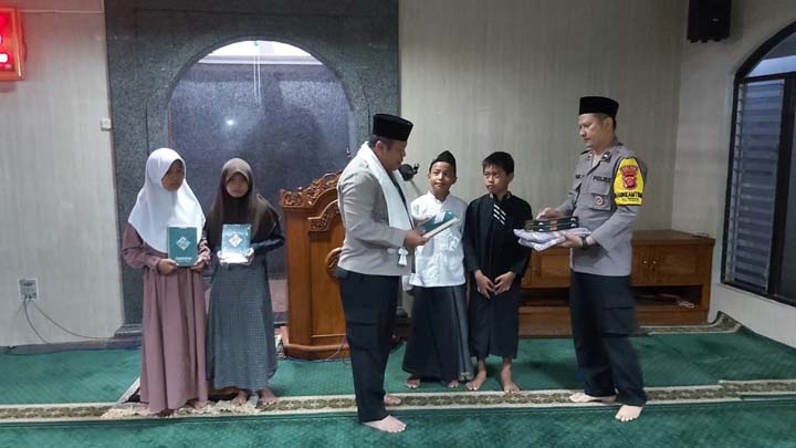Selanjutnya, kegiatan Wakapolres Shalat Subuh Berjamaah yang dilanjutkan dengan Tausiyah serta pemberian bingkisan Al-Qur’an dan Alat Shalat kepada 4 anak yatim piatu DKM Al Azhariyah.